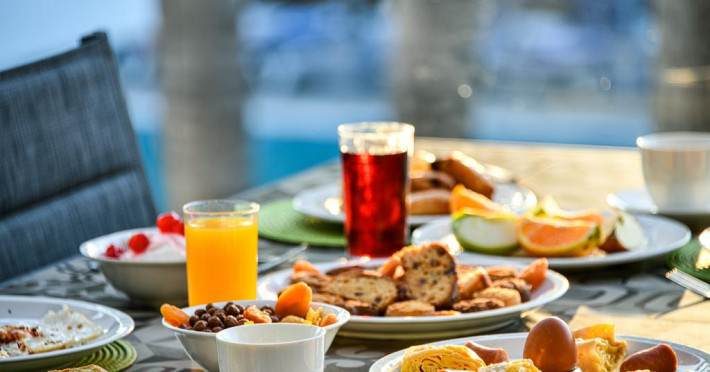 La Dodeca Sea Resort oaspeții au la dispoziție 3 restaurante unde pot savura mâncăruri delicioase, în stil bufet sau à la carte. Preparate din bucătăria locală și mediteraneană așteaptă să fie degustate în fiecare zi la micul dejun, prânz și cină. Pizza este de asemenea o opțiune culinară pentru cei gurmanzi. Masa poate fi servită atât în interior, cît si în aer liber, pe terasă, în funcție de vreme. Oaspeţii pot avea diverse băuturi răcoritoare sau alcoolice la bar. În cadrul proprietății există și un snack bar care servește băuturi și gustări.