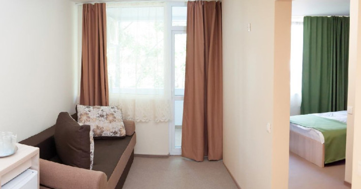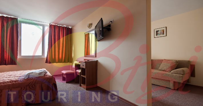 Family suite (maxim 4 persoane_3 adulti+ 1 copil 0-9.99 ani): garsoniera modernizata 3* (etaj 6-7) compusa din: 1 camera cu 2 pat matrimonial, 1 camera cu o canapea extensibila, balcon, mobilier nou, AC, TV LED, frigider, telefon, baie cu dus;