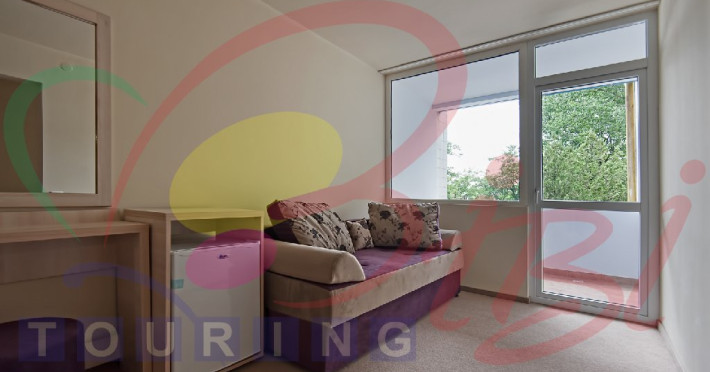 Studio suite (maxim 4 persoane_3 adulti+ 1 copil 0-9.99 ani): garsoniera modernizata 3* (etaj 1) compusa din: 1 camera cu 2 pat matrimonial, 1 camera cu o canapea extensibila, balcon, mobilier nou, aer conditionat, TV LED, frigider, telefon, baie cu dus.