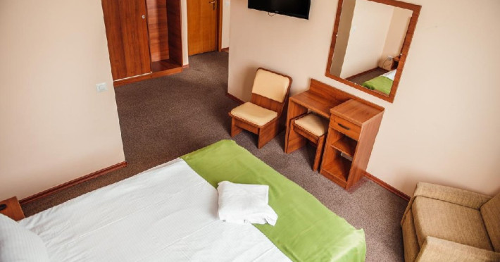 Camerele KING 2* CU AER CONDITIONAT (2 adulti + 1 copil 0-9.99 ani): 2 paturi de 1 persoana alaturate, mobilier vechi, AC, TV, frigider, telefon, baie cu dus;