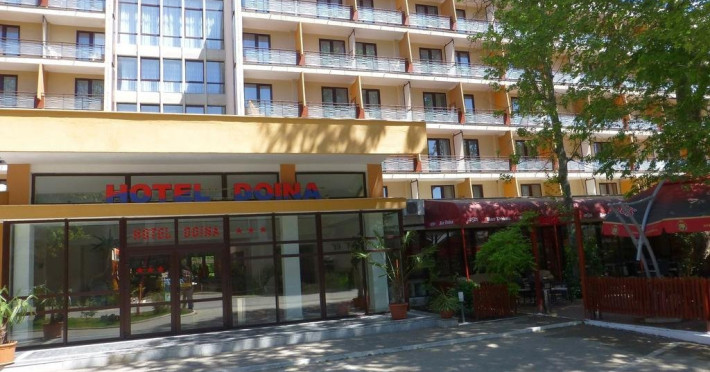 Informatii HOTEL DOINA este situat in Neptun, langa hotel Balea, la 300 m de plaja, intr-o zona ferita de agitatie. Acesta are o capacitate de 320 camere dispuse in apartamente, duble si single toate ridicandu-se ireprosabil la nivelul celor 3 stele, ca urmare a renovarii integrale ce a fost incheiata recent. Va informam ca incepand cu sezonul 2021 se va incasa la check-in taxa de statiune, in valoare de 5 lei/persoana/zi, conform HCL 283/23.12.2020. Vor fi taxate toate persoanele cu varsta de 18 ani impliniti. Dotari si servicii Hotel Doina este un loc modern si primitor unde serviciile sunt la cele mai inalte standarde. Detine parcare proprie, piscina interioara renovata, 4 ascensoare, seif pentru valori, camera pentru bagaje, farmacie, exchange, bar cu terasa, restaurant climatizat, sali de conferinta. Nu se accepta animale de companie. Piscina din Policlinica Doina este folosita doar pentru cura balneara. Policlinica Doina nu functioneaza sambata si duminica, tratamentul se efectueaza 5 zile pe saptamana, de luni pana vineri. NOTA IMPORTANTA: In pachetele de tratament balnear la oferte nu sunt incluse: impachetari generale de namol, baie cu namol, impachetari cu parafina. Servicii masa MASA: restaurant propriu 3*. Mic dejun - bufet suedez 7:30 - 10:00; Pranz - bufet suedez 13:00 - 15:00; Cina - bufet suedez 19:00 - 21:00. Daca la masa sunt mai putin de 30 persoane, se organizeaza meniu fix cu 3 variante din care turistii pot alege. Dotari camereToate camerele sunt dotate cu aer conditionat, TV, frigider, telefon, internet, balcon, baie cu cabina de dus, incalzire centrala. Facilitati copii In camera cu 2 adulti: - copiii cu varsta intre 0 - 2.99, au gratuitate la cazare si mic dejun, fara pat suplimentar; - copiii cu varsta intre 3 - 13.99, au gratuitate la cazare, fara pat suplimentar si achita 50% din masa; la solicitarea unui pat suplimentar se achita 50% din tariful de cazare; - copiii intre 14 - 15.99 ani platesc 70% din tariful unui loc de cazare cu pat suplimentar si au 50% reducere la masa.Datorita dinamicitatii domeniului disponibilitatea ofertelor se modifica de la un moment la altul. De aceea ofertele sunt valabile in limita locurilor disponibile. Agentia nu este responsabila pentru eventualele neconcordante care pot aparea intre informatiile privind tarifele si alte detalii din site si informatiile primite in agentie. In aceste cazuri vor avea prioritate, intotdeauna, informatiile primite in agentie.