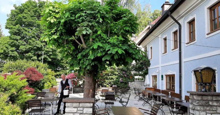 Restaurantul are o terasă si o grădină de bere. Acesta serveste preparate din bucătăria austriacă traditională.