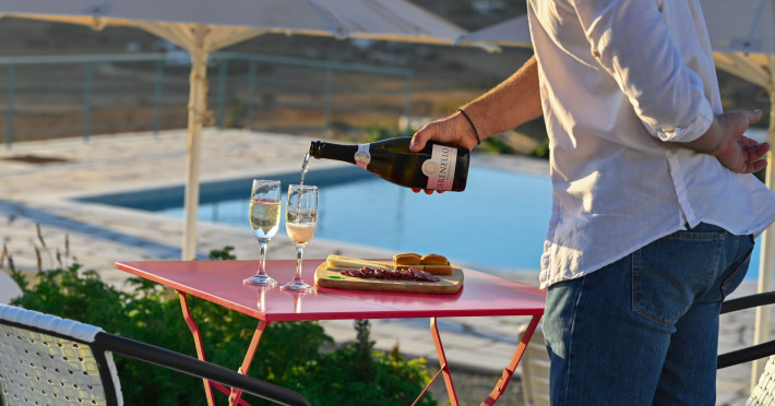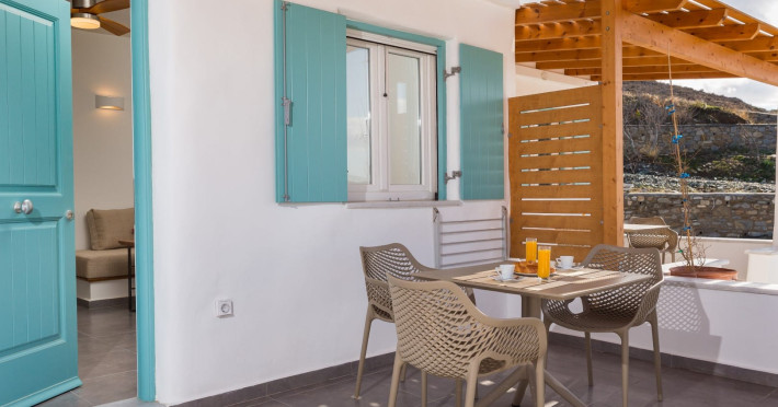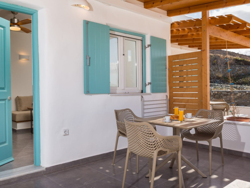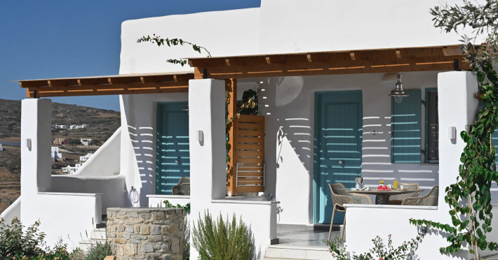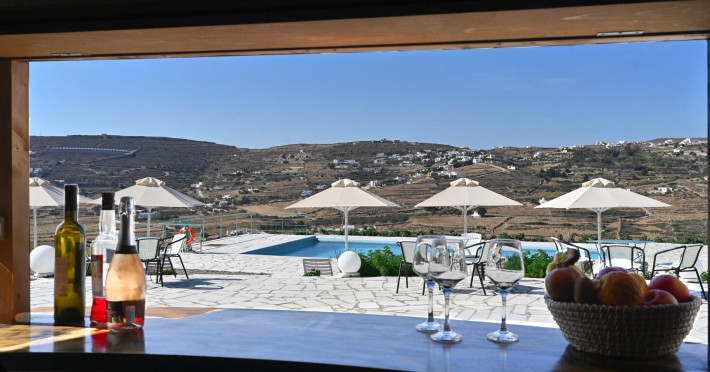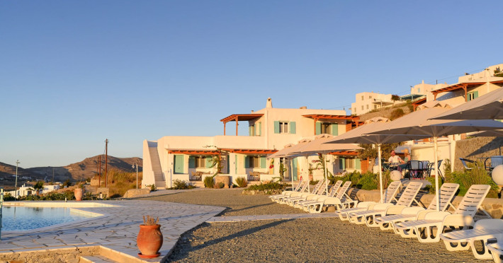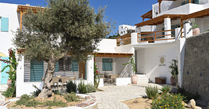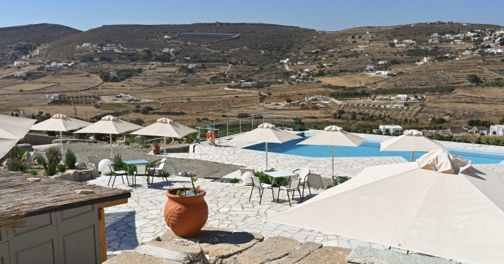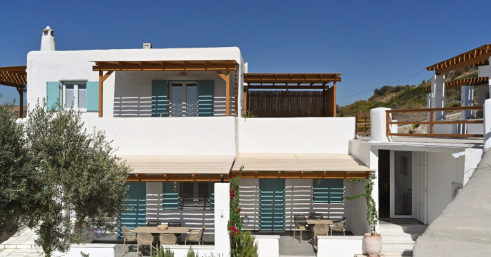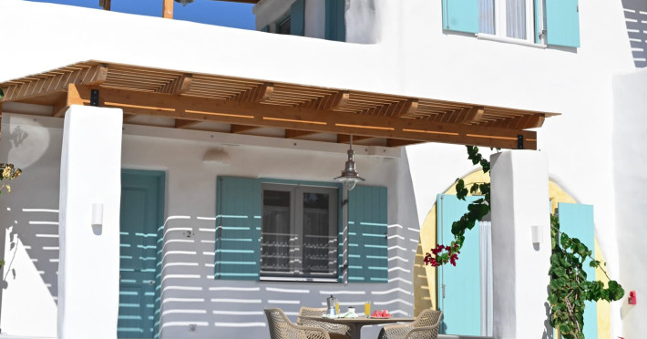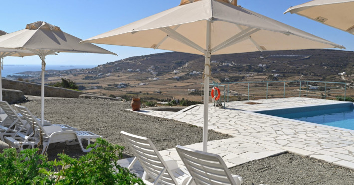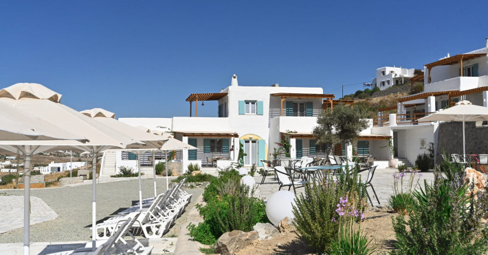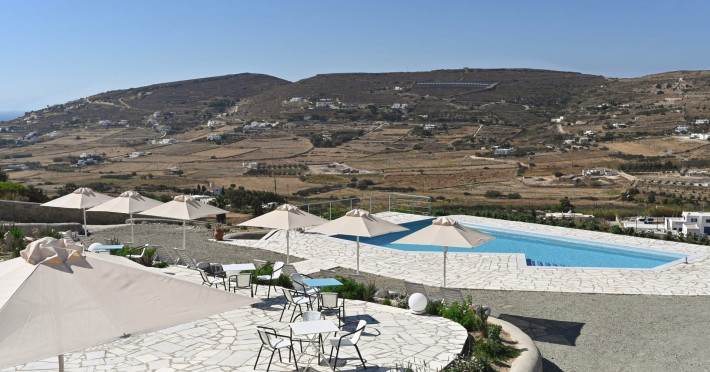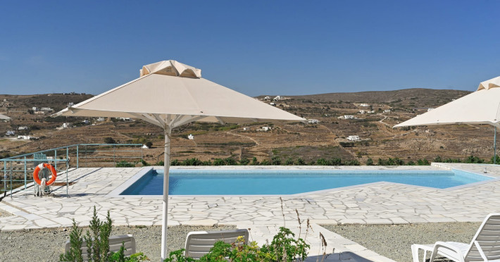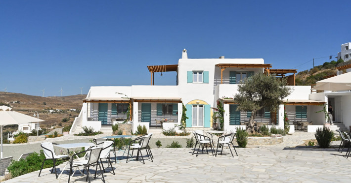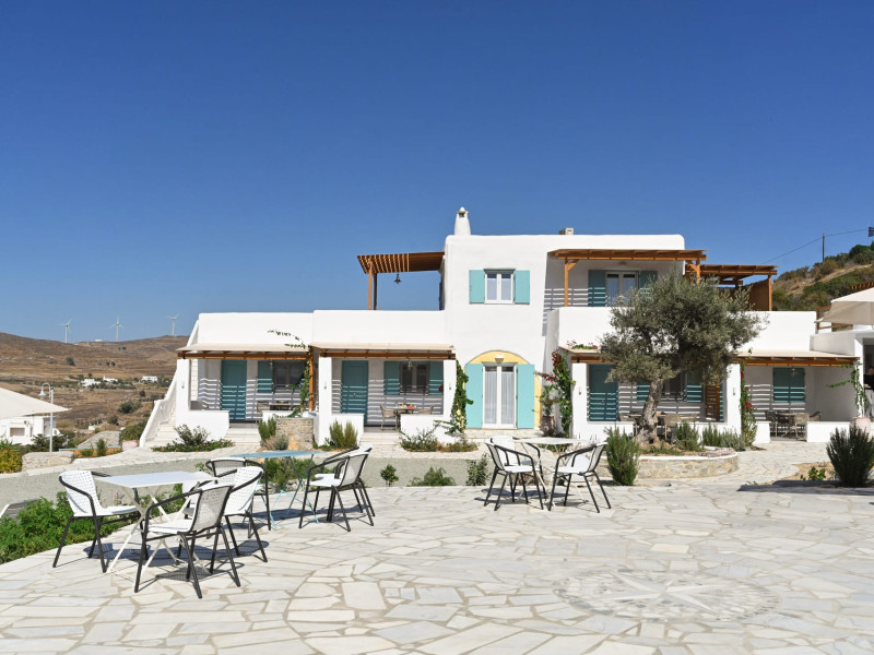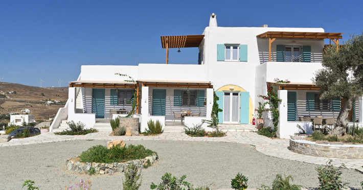 The property is composed by nine furnished apartments and it is situated at the side of a Hill overlooking the port of Parikia. The apartments have a living room with an equiped kitchenette a separate bedroom and a bathroom (4 persons capacity), while two apartments have an extra living room with a sofa bed 6 persons capacity). Seven units are distributed on the ground floor while two are situated on the first floor. Externally there is a pool with a wide garden area and a private carpark.