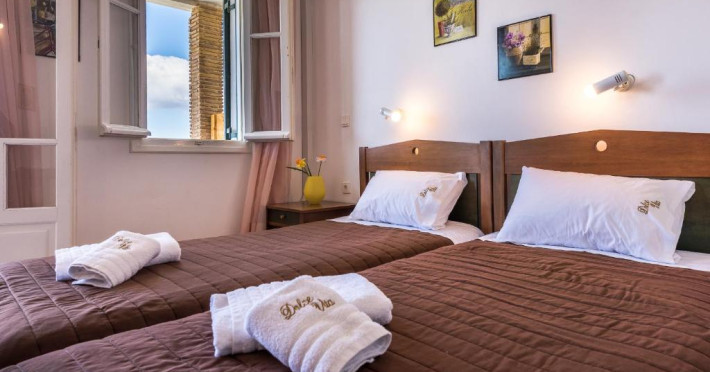 Camerele confortabile de la Dolce Vita Residence sunt dotate cu pardoseală de gresie/ marmură, aer condiționat și Tv. Fiecare cameră dispune de cană-fierbător. În camere există baie cu duș. Curățenia in cameră se face zilnic. Fiecare unitate de cazare include o chicinetă utilată cu frigider, plită de gătit și ustensile de bucătărie. Proprietatea oferă camere pentru familie cu o suprafață mai mare și un număr mai mare de paturi față de cele standard.