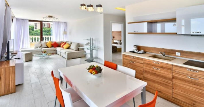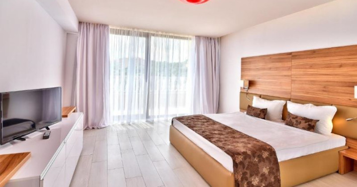 Hotelul SH Dolce Vita se bucură de o locație excepțională, fiind amplasat la doar 250 de metri distanță de linia malului mării. Poziționat în mijlocul unei superbe grădini interioare, acest paradis verde oferă o oază de relaxare într-o zonă împădurită naturală. Oaspeții sunt întâmpinați de un cadru idilic, unde frumusețea naturii se îmbină armonios cu confortul modern oferindu-le o experiență de neuitat în mijlocul unei naturi întinse.Facilități camere