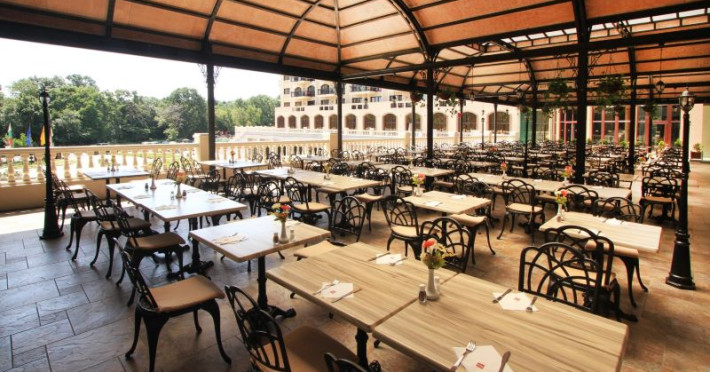 Hotelul oferă un restaurant principal și două restaurante tematice (bulgăresc și grecesc), alături de un bar cu o terasă mare în aer liber. Pentru relaxare și distracție, sunt disponibile două piscine exterioare și o piscină interioară, precum un mini Aquapark, un bar și snack bar în jurul piscinei. Copiii au la dispoziție o secțiune specială într-una dintre piscinele exterioare și un loc de joacă dedicat. Hotelul are și o sală de conferințe denumită "Bar salon". În plus, sunt oferite facilități sportive precum terenuri de minifotbal și volei, tenis de masă, gimnastică în apă, aerobic, fitness și darts. Pentru relaxare și revitalizare, oaspeții pot accesa centrul spa (contra cost), care include diverse tratamente, saună, baie de aburi, baie cu hidromasaj, hamam, masaje și un salon de înfrumusețare.