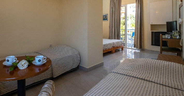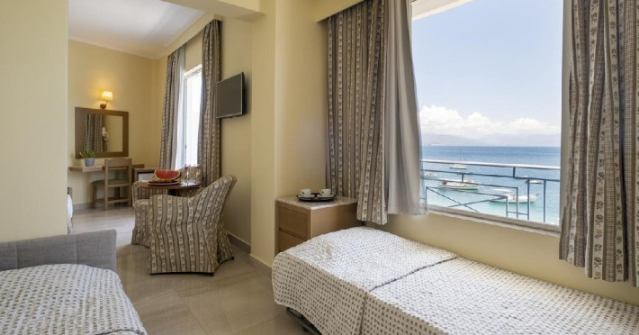 Locatie: Hotelul Dolfin se afla in partea veche a statiunii Tolo, chiar pe plaja de nisip si ofera o frumoasa priveliste spre golful statiunii Tolo, mai exact spre micutele insule Romvi si Koronisi.Facilitati camere: Cele 33 de camere beneficiaza de: AC, TV, WiFi, uscator de par, telefon, frigider, baie cu dus/cada si balcon.