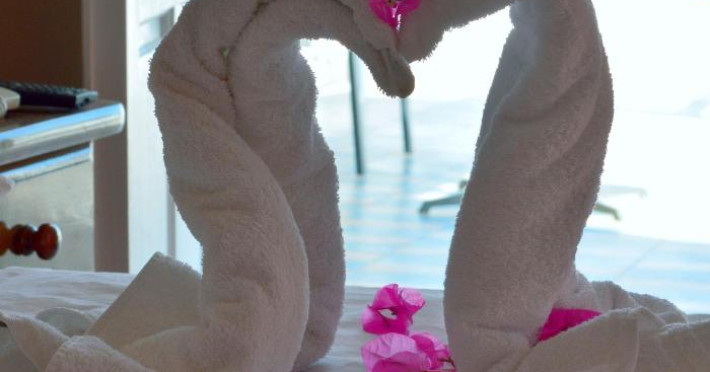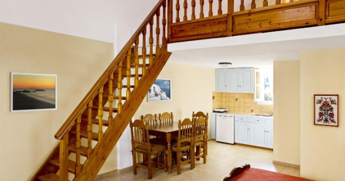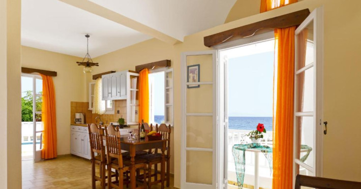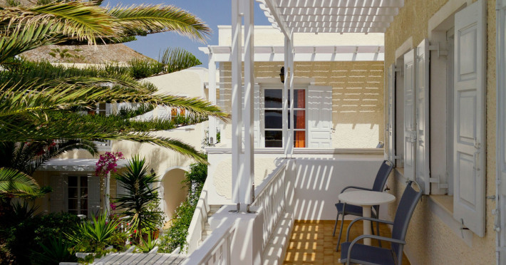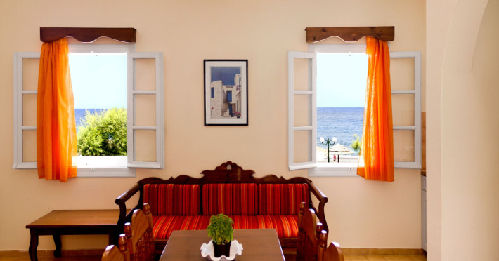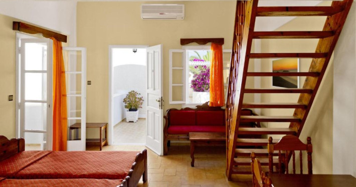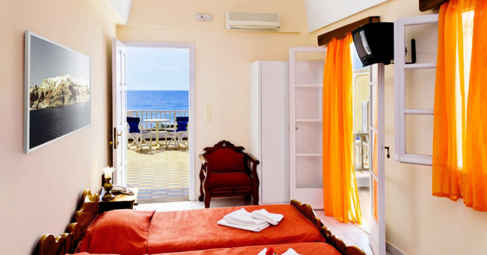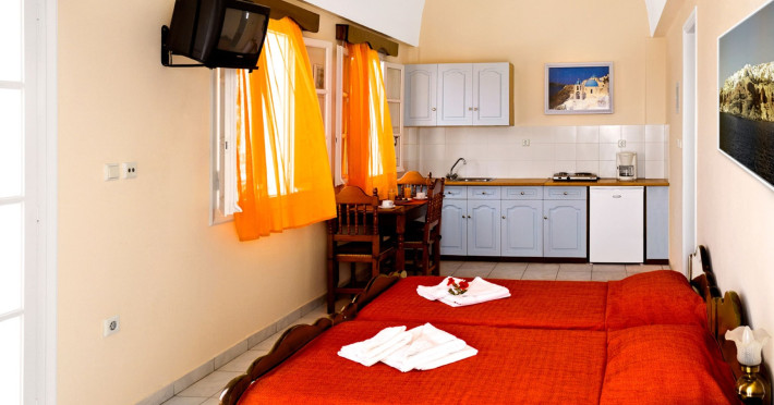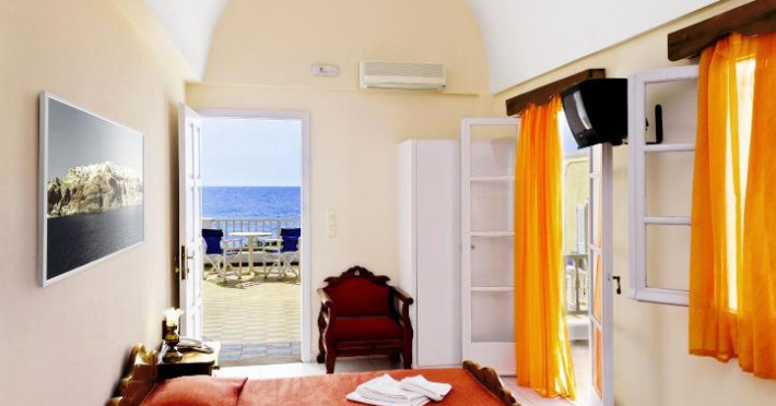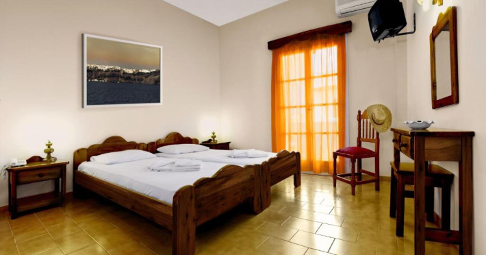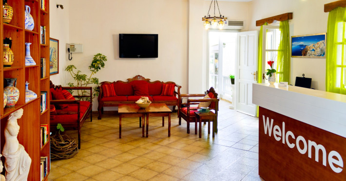 Hotelul la plajă, ideal pentru turiști de la plajă, se află în centrul localității Kamari, la câteva secunde de plajă.