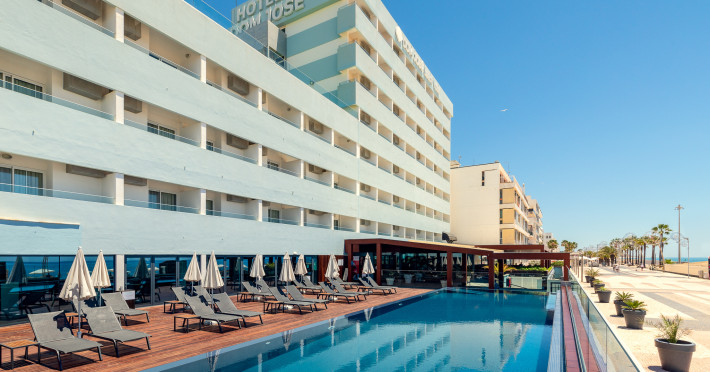 The hotel Dom Jose Beach Hotel is located in the vicinity of a private and public sandy beach. The city centre is also just a few steps away. The beach is patrolled by a lifeguard and awarded a blue flag. Here, there are cushions and beach towels for a fee as well as sun umbrellas available. The hotel is equipped with a 24h reception (check-in is possible around the clock), a lobby bar, Wi-Fi, internet access, a lift, a first aid kit as well as a TV lounge with satellite TV. In the outdoor area you will find a pool (open all year), where you can rent pool towels for a fee. Furthermore, outside you can find a terrace. In addition, the hotel Dom Jose Beach Hotel is video-monitored 24h a day. For very young guests, kid`s chairs can be provided). You can store your luggage in the hotel's storage room. There is also a laundry service available at an additional cost to customers. The energy supply is 220 and 240 Volts. For conventions and other business meetings, the hotel offers a conference area (extra fee) with a total of 2 seats as well as fax. If you want to explore the holiday region, you can use the car and motorbike rental service close to the hotel (extra fee). At the hotel reception, tickets are offered for excursions in the area. American Express and Euro/Master Card are accepted as means of payment. Due to its barrier-free facilities , such as wheelchair accessible rooms and wheelchair-accessible bathrooms, the hotel is also suitable for wheelchair users. Catering As catering services the hotel offers half board and full board. Breakfast is offered from the buffet. Dinner is also served as a buffet. For the meals, there are a buffet restaurant with terrace (gluten-free and vegetarian dishes) and 2 bars as well as the pool bar. Sports & Leisure The wellness area offers massages (extra fee). Your place of accommodation offers a babysitting service (extra fee), so that adults can also find some time to relax. In terms of adult entertainment, live music is presented on certain days. Additional information The hotel has a total of 154 rooms. This hotel is gay-friendly. The hotel staff speak English, French, Spanish and Portuguese.The hotel Dom Jose Beach Hotel is located in the vicinity of a private and public sandy beach. The city centre is also just a few steps away. The beach is patrolled by a lifeguard and awarded a blue flag. Here, there are cushions and beach towels for a fee as well as sun umbrellas available. The hotel is equipped with a 24h reception (check-in is possible around the clock), a lobby bar, Wi-Fi, internet access, a lift, a first aid kit as well as a TV lounge with satellite TV. In the outdoor area you will find a pool (open all year), where you can rent pool towels for a fee. Furthermore, outside you can find a terrace. In addition, the hotel Dom Jose Beach Hotel is video-monitored 24h a day. For very young guests, kid`s chairs can be provided). You can store your luggage in the hotel's storage room. There is also a laundry service available at an additional cost to customers. The energy supply is 220 and 240 Volts. For conventions and other business meetings, the hotel offers a conference area (extra fee) with a total of 2 seats as well as fax. If you want to explore the holiday region, you can use the car and motorbike rental service close to the hotel (extra fee). At the hotel reception, tickets are offered for excursions in the area. American Express and Euro/Master Card are accepted as means of payment. Due to its barrier-free facilities , such as wheelchair accessible rooms and wheelchair-accessible bathrooms, the hotel is also suitable for wheelchair users. Catering As catering services the hotel offers half board and full board. Breakfast is offered from the buffet. Dinner is also served as a buffet. For the meals, there are a buffet restaurant with terrace (gluten-free and vegetarian dishes) and 2 bars as well as the pool bar. Sports & Leisure The wellness area offers massages (extra fee). Your place of accommodation offers a babysitting service (extra fee), so that adults can also find some time to relax. In terms of adult entertainment, live music is presented on certain days. Additional information The hotel has a total of 154 rooms. This hotel is gay-friendly. The hotel staff speak English, French, Spanish and Portuguese.