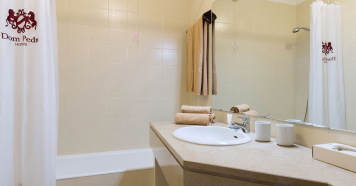 Around 50 m from a beach lies the accommodation Dom Pedro Portobelo Vilamoura Apartment Hotel & Golf. There is a shuttle between the hotel and the airport (for a fee). The hotel has a 24h reception, a lobby bar, Wi-Fi, a jacuzzi as well as parking spaces (limited). Outside there is a separate children's pool, where sun loungers and sun umbrellas are available for free. Furthermore, you can relax outdoors in the garden. Inside the hotel you can use a heated indoor pool. Your valuables can be stored in the hotel safe. There is also a laundry service available at an additional cost to customers. Ironing equipment can be rented at the hotel for a fee. For conventions and other business meetings, the hotel offers a conference area. If you want to explore the holiday region, you can use the car rental service close to the hotel (extra fee). Catering Your physical well-being is catered for by a restaurant. Distances- Airport: approximately at 25 km