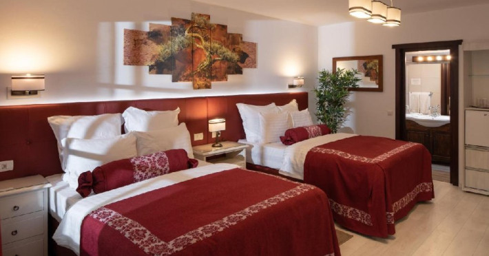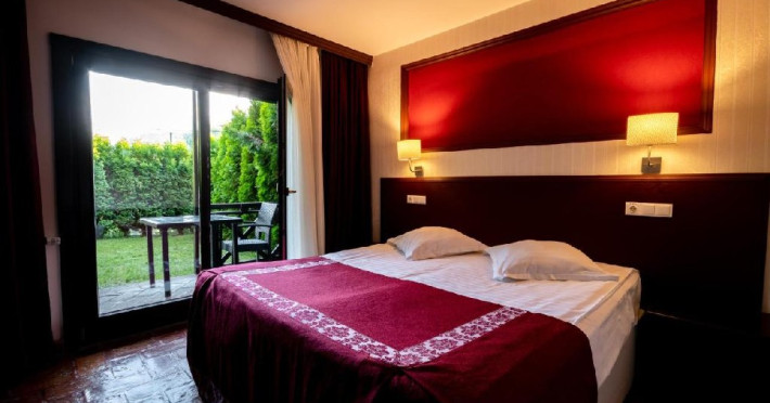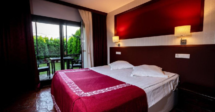 Toate camerele duble superioare ( 34 mp si doua paturi matrimoniale) sunt pozitionate la parterul hotelului si se bucura de terasa proprie cu masuta si bancheta.