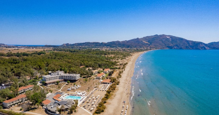 Descriere: Asezat pe un teren protejat de natura, pregatiti-va sa fiti martor la frumusetea profunda. Intindeti-va in iarba de sub padurea de pini care da culoarea vie turcoazului ionic. Faceti scufundari in ape cristaline si experimentati intalniri cu viata marine. Cu sate vibrante din apropiere suficient de aproape pentru a ajunge pe jos si suficient de departe pentru a permite o relaxare linistita, aceasta fasie magica de plaja este, desigur, locatia principala a orasului Zante.Localizare: Situat la doar 5 km de Aeroportul Zakynthos, amplasat intr-un sanctuar de broaste testoase protejat de natura, statiunea iese dintr-o padure de pini cu nisip alb. O lume departe de toate, pe aceste terenuri pastrate in mod natural, interferenta cu natura este redusa la minimum, linistea este indigena si face loc doar ciripitului de vara al pasarilor cantatoare locale.