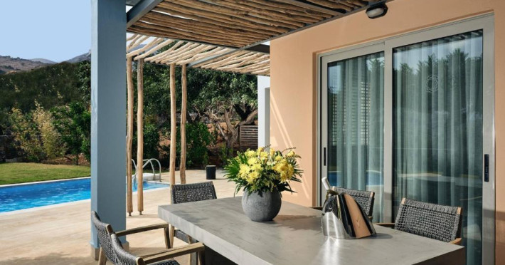 Proprietatea de 5 stele Domes of Elounda, Autograph Collection oferă unități de cazare luxoase, cu o cadă tip spa și vedere la insula Spinalonga, inclusă in Patrimoniul UNESCO, și la castelul venețian al insulei. La proprietate există un centru spa și 4 restaurante care servesc mancăruri haute cuisine.