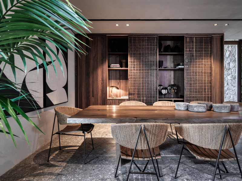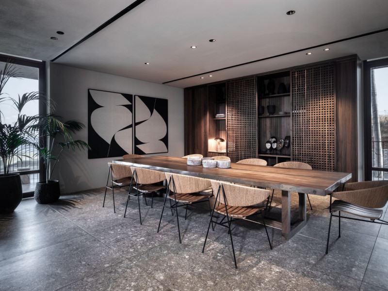 - Lounge area with tablets, magazines, and coffee table books