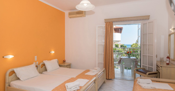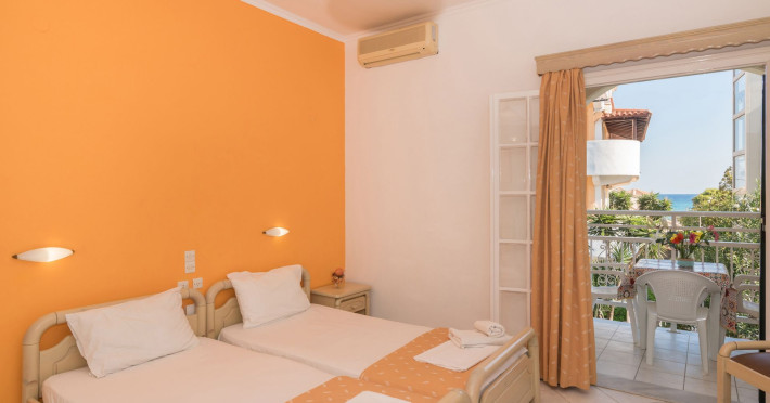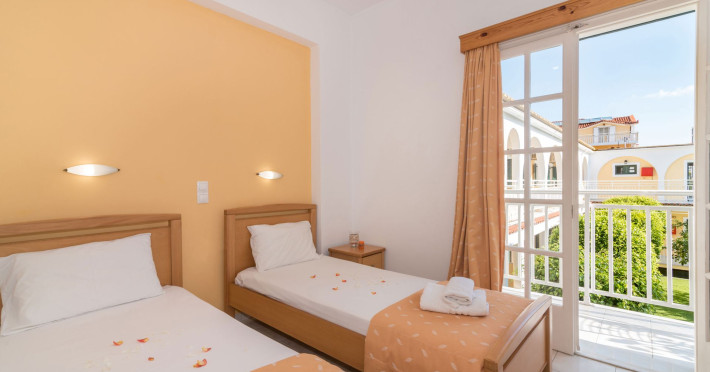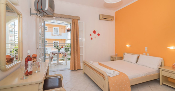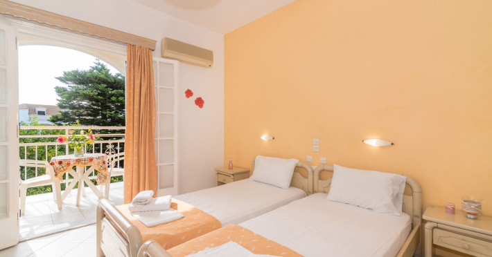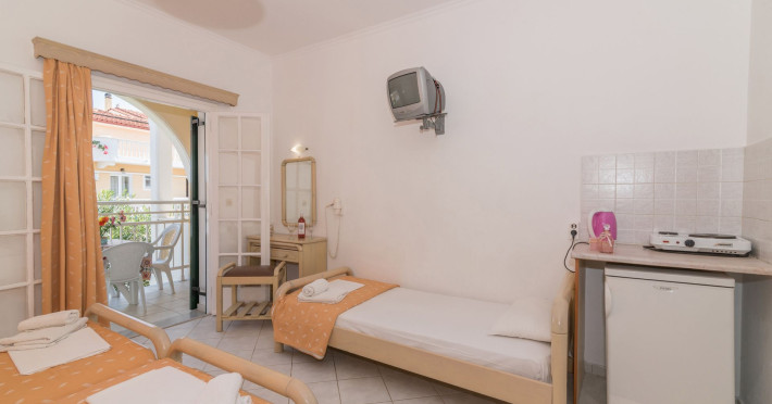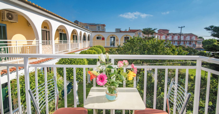 Fully equipped studios, 100m from the sandy beach (1.5km long) and shallow warm waters of Tsilivi in Zante. Accommodation offering a warm, quiet and hospitable stay, at affordable prices. Domus Alta is situated in the well-known tourist resort of Tsilivi, 4 km from the town of Zakynthos and 7km from Dionysios Solomos Airport. Choose among studios or apartments with a terrace and/or balcony with garden view. Domus Alta enjoys an ideal location in the center of the village, close to markets, restaurants, and nightlife attractions. It is recommended as a great resort for family and couples holidays, as it offers great value for money accommodation in Zante.Datorita dinamicitatii domeniului disponibilitatea ofertelor se modifica de la un moment la altul. De aceea ofertele sunt valabile in limita locurilor disponibile. Agentia nu este responsabila pentru eventualele neconcordante care pot aparea intre informatiile privind tarifele si alte detalii din site si informatiile primite in agentie. In aceste cazuri vor avea prioritate, intotdeauna, informatiile primite in agentie.