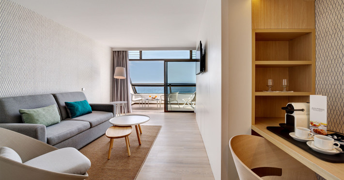 Aparatul de aer condiționat creează o atmosferă plăcută in camere. In majoritatea spațiilor de cazare clienții beneficiază de vedere spre mare de pe balcon sau de pe terasă. Camerele au o canapea. Sunt disponibile dormitoare separate. De asemenea, sunt disponibile un seif, un minibar și un birou. Mai sunt disponibile și un frigider, un minifrigider și un aparat pentru cafea/ceai. Se garantează diverse posibilități de comunicare și divertisment prin echiparea cu un telefon cu apelare directă, canale prin satelit și WiFi (contra cost). In cameră se găsesc și papuci de casă. Băile dispun de un duș și de o cadă. Un uscător de păr, o oglindă de machiaj și halate de baie stau la dispoziție pentru folosința zilnică. Articolele de cosmetică creează un confort deosebit in băi. De asemenea, stau la dispoziție camere adaptate pentru scaun cu rotile cu baie fără bariere. Hotelul oferă camere de nefumători.