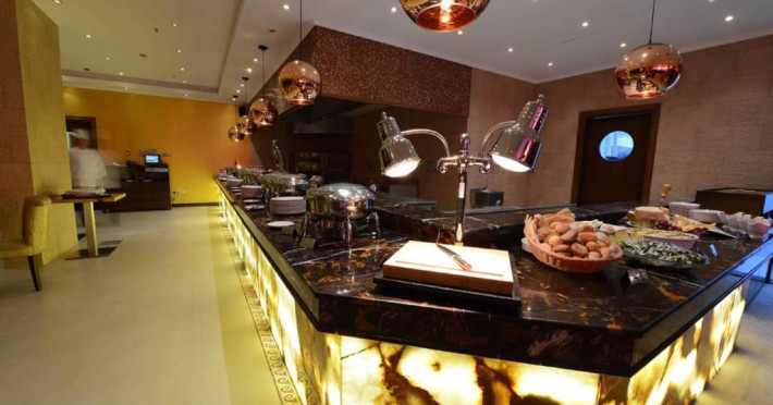 La Donatello oaspeții au la dispoziție un restaurant care servește mâncare à la carte. Preparate din bucătăria internațională și italiană sunt oferite zilnic la micul dejun, prânz și cină. Masa poate fi servită atât în interior, cît si în aer liber, pe terasă, în funcție de vreme. Oaspeţii pot avea diverse băuturi răcoritoare sau alcoolice la bar. De asemenea , în cadrul proprietății, există cafenea și snack bar ideale pentru o gustare rapidă. Pentru cei cu anumite nevoi de nutriție, Donatello oferă meniuri pentru diete speciale.