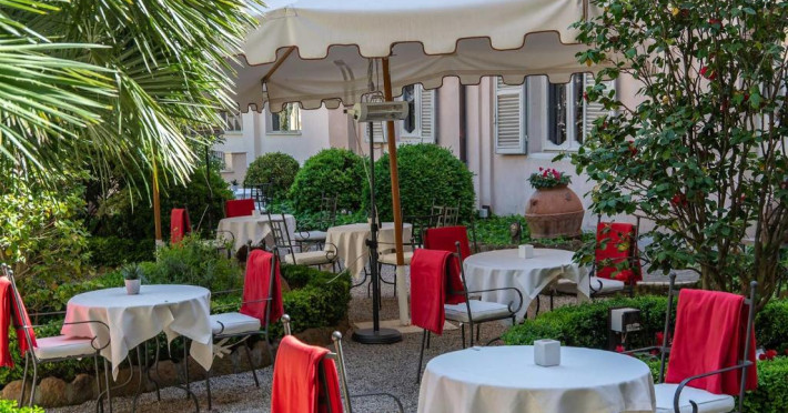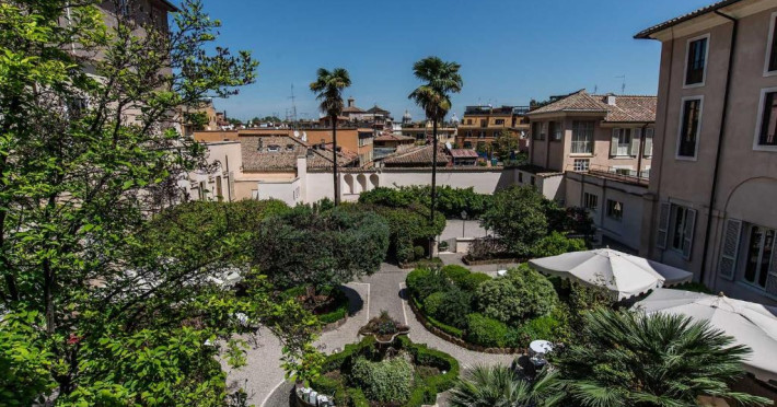 The terrace at the Camilla Savelli offers views of the Eternal City. The inner garden is complete with patio.
