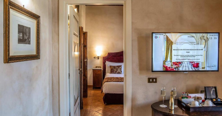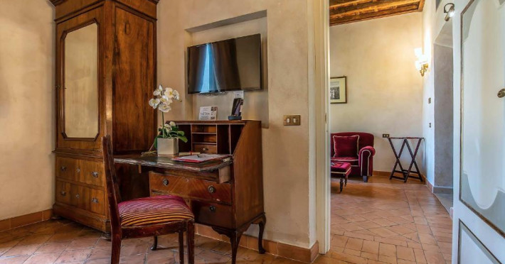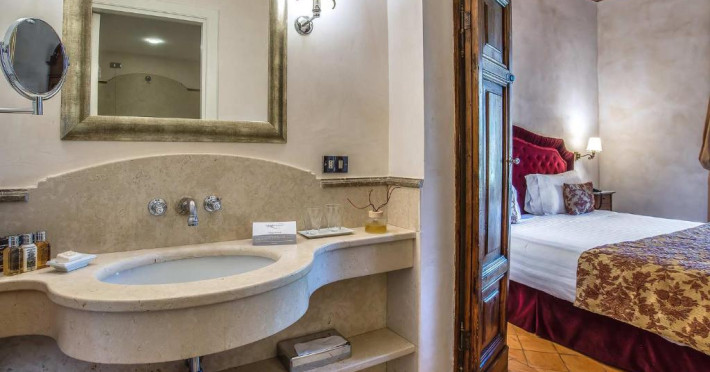 The property dates back to the 17th-century, and features exposed wooden beams on the ceilings and precious stuccoes. Rooms are air-conditioned and offer an LCD TV with satellite channels. The en suite bathrooms are complete with bathrobes and slippers.