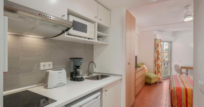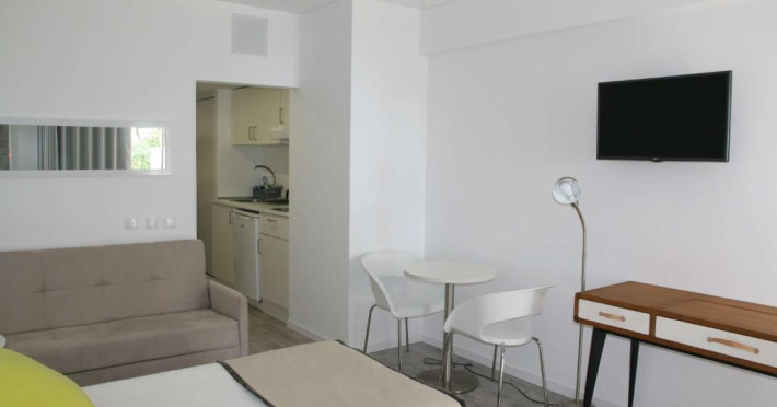 Camerele spațioase sunt dotate cu chicinetă complet utilată, balcon privat și zonă de relaxare, fiind ideale pentru sejururi prelungite. Oaspeții au la dispoziție o piscină in aer liber cu șezlonguri și umbrele, precum și o terasă insorită cu vedere panoramică asupra oceanului.