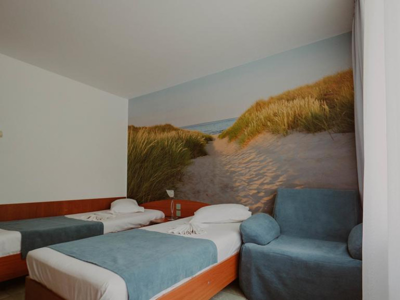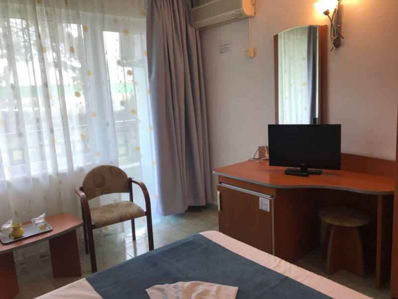 Hotelul este situat in nordul statiunii Mamaia, la 100 m de plaja. Facilitati hotel: receptie non-stop, seif, restaurant, bar, terasa, gradina, piscina exterioara, plaja privata, sala de conferinte, loc de joaca pentru copii, baza sportiva (mini-teren de badminton si volei, masa de tenis, biliard), sala fitness, animatii si divertisment (karaoke, spectacole/muzica live, seri tematice), jocuri (darts, rummy, table), facilitati pentru persoanele cu mobilitate redusa, WI-FI gratuit, parcare gratuita. Facilitati camere: aer conditionat, TV LCD, telefon, birou, minibar, seif, WI-FI gratuit, baie proprie cu dus/cada, uscator de par, balcon, unele camere au canapea extensibila.Datorita dinamicitatii domeniului disponibilitatea ofertelor se modifica de la un moment la altul. De aceea ofertele sunt valabile in limita locurilor disponibile. Agentia nu este responsabila pentru eventualele neconcordante care pot aparea intre informatiile privind tarifele si alte detalii din site si informatiile primite in agentie. In aceste cazuri vor avea prioritate, intotdeauna, informatiile primite in agentie.