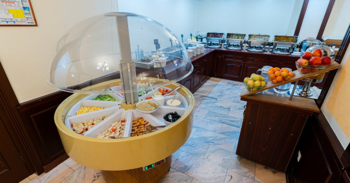 Hotelul dispune de si de o terasa deschisa in perioada mai-spetembrie, cu o capacitate de 40 locuri, fiind locul unde turistii se pot bucura de delicioasele limonade home- made, cat si de specialitatile culinare