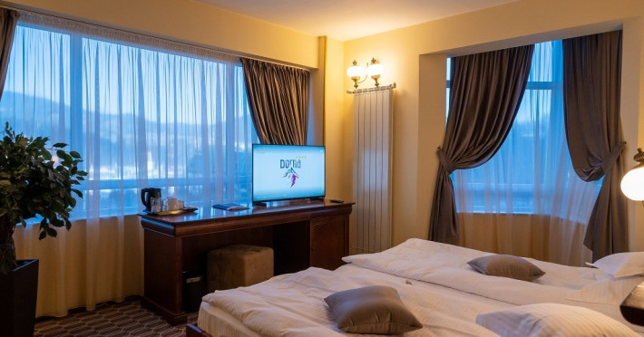 Hotelul Dorna Vatra Dornei este locul unde confortul este asigurat cu cele mai bune servicii si facilitati unde turistii se pot bucura de o ambianta calda, relaxanta si rafinata, indiferent ca sunt intr-o excursie sau din motive de afaceri.Situat in inima frumoasei statiuni Vatra Dornei, la baza Partiei Parc, Hotelul Dorna pune la dispozitia turistilor sai 40 spatii de cazare dotate modern. Acestea se impart in: