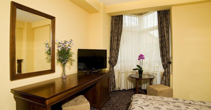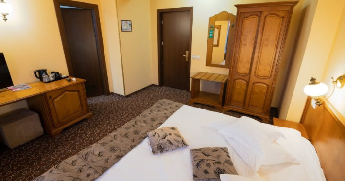 Statiunea Vatra Dornei, supranumita si âPerla Bucovineiâ, este situata la o altitudine de 802 m in Depresiunea Dornelor, la 112 km distanta de Suceava si 89 km de Bistrita Nasaud, la confluenta Bistritei Aurii cu Dorna. Regiunea Dornelor este ferita de vanturi fiind aparata de Carpati care ocrotesc zona. Zona are un climat temperat continental de nuanta alpina, cu o temperatura medie anuala de 4,5 grade C. Precipitatiile bogate si relieful sub forma de terase au favorizat dezvoltarea unei intinse panze freatice, care iese la lumina sub forma de izvoare cu apa minerala. Se poate spune ca aici ne aflam intr-o adevarata imparatie a apelor minerale, exploatate si industrial la Poiana Negri, Sarul Dornei si Floreni. Vatra Dornei este cunoscuta ca o statiune pentru toate varstele, adresandu-se atat persoanelor care doresc sa-si fortifice organismul prin ascensiunile montane sau prin sporturile de iarna, sau care doresc sa se odihneasca intr-un bioclimat tonic stimulent cu influenta benefica asupra sistemului nervos. Pentru refacerea sanatatii Vatra Dornei ofera factori naturali de cura cum sunt: izvoarele cu apa minerala carbogazoase izvoarele bicarbonatate, calcice, magnezice si sulfuroase mofete naturale de saruri de mare puritate si concentratie de CO2 namolul de turba din zona Poiana Stampei partii de schiDatorita dinamicitatii domeniului disponibilitatea ofertelor se modifica de la un moment la altul. De aceea ofertele sunt valabile in limita locurilor disponibile. Agentia nu este responsabila pentru eventualele neconcordante care pot aparea intre informatiile privind tarifele si alte detalii din site si informatiile primite in agentie. In aceste cazuri vor avea prioritate, intotdeauna, informatiile primite in agentie.
