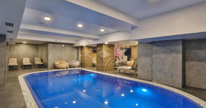 Centrul SPA functioneaza in intervalul 10 - 22 si este dispune de piscina incalzita, sauna uscata, sauna umeda, salina, camera rece, sala de fitness