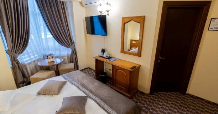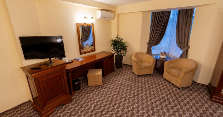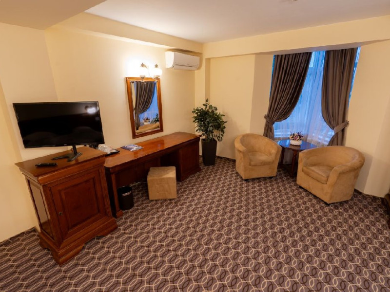 Dotari camere: acces pe baza de cartela electronica, baie proprie cu dus, televizor cu ecran LCD cu diagonala de 81 cm, program TV prin cablu, internet gratuit WiFi si cablu, aparat aer conditionat, seif, minibar, fierbator de apa, halat si papuci de unica folosinta, produse cosmetic, uscator de par.