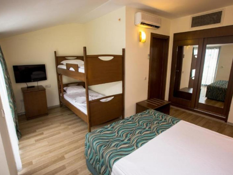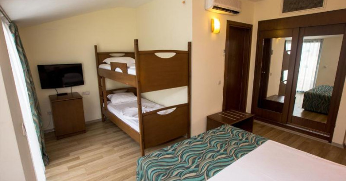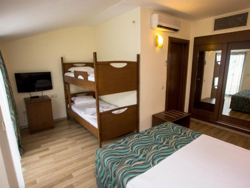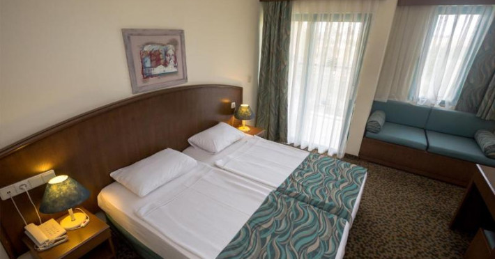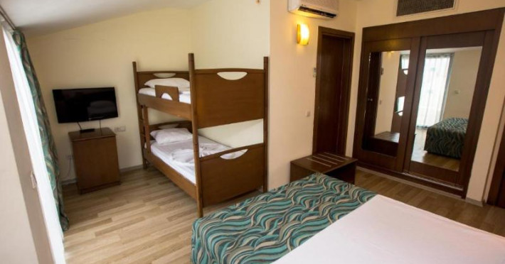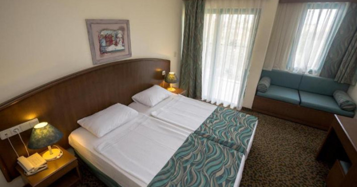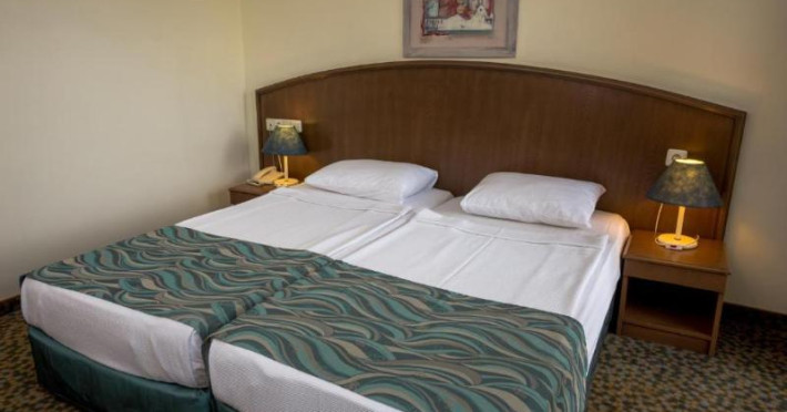 Guests have a choice of 52 apartments and 148 double rooms located in two 4-storey buildings with lifts. Staffed 24 hours a day, the reception desk makes check-in and check-out easy. Amenities available at the hotel include a baggage storage service, a safe and a currency exchange service. Wireless internet access allows guests to stay connected while on holiday. The tour desk offers assistance with booking excursions. Wheelchair-accessible facilities are available. There are a number of shops, including a supermarket. The grounds of the hotel feature a playground and a lovely garden. Additional amenities include a TV room and a playroom. Guests arriving by car can park their vehicles in the garage (no extra charge) or in the car park. Further services and facilities include a childcare service, medical assistance, a transfer service, room service, a laundry service, a hairdresser and a hotel shuttle bus. A bicycle hire service (for a fee) gives guests the opportunity to explore the surrounding area independently.Datorita dinamicitatii domeniului disponibilitatea ofertelor se modifica de la un moment la altul. De aceea ofertele sunt valabile in limita locurilor disponibile. Agentia nu este responsabila pentru eventualele neconcordante care pot aparea intre informatiile privind tarifele si alte detalii din site si informatiile primite in agentie. In aceste cazuri vor avea prioritate, intotdeauna, informatiile primite in agentie.