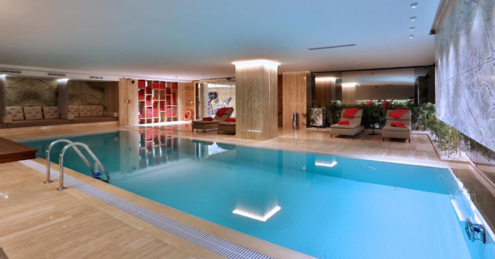 Piscinele interioare și exterioare se potrivesc de minune pentru antrenamente constante in apă și odihnă activă. Clienții pot profita de vremea bună pe terasă. Cada cu hidromasaj din zona de scăldat promite relaxare profundă. O sală de fitness, biliard și aerobic fac parte din oferta de activități sportive și pentru timpul liber a locului de cazare. In unitatea de cazare sunt propuse diverse oferte de relaxare, ca de exemplu spa, saună, baie de aburi, hamam, salon de infrumusețare, terapii prin masaj și solariu. Copiii sunt supravegheați cu grijă la miniclub. Copyright GIATA 2004 - 2023. Multilingual, powered by www.giata.com for client no. 128259