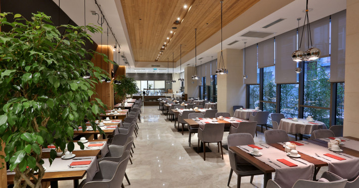 Zona cu restaurante dispune de un restaurant și de o cafenea. Hotelul oferă pentru masă demipensiune, pensiune completă și regim all inclusive. Se oferă micul dejun, pranzul și cina. Sunt disponibile și mancăruri speciale, printre care feluri de mancare vegetariene. De asemenea, locul de cazare pune la dispoziție gustări. Unitatea de cazare oferă un sortiment de băuturi alcoolice și nealcoolice.