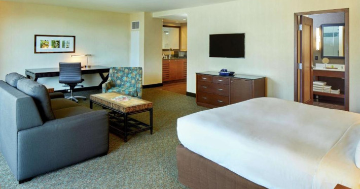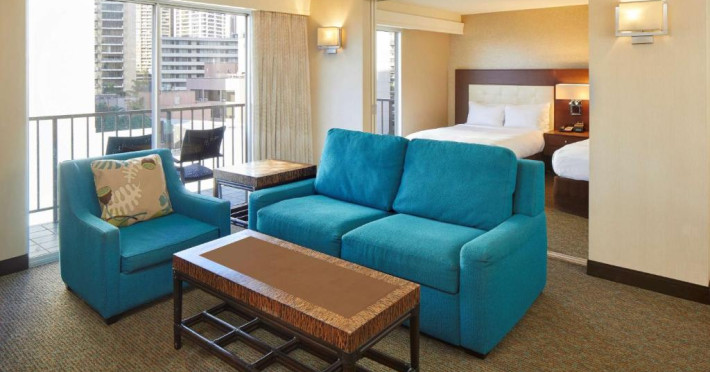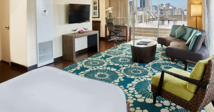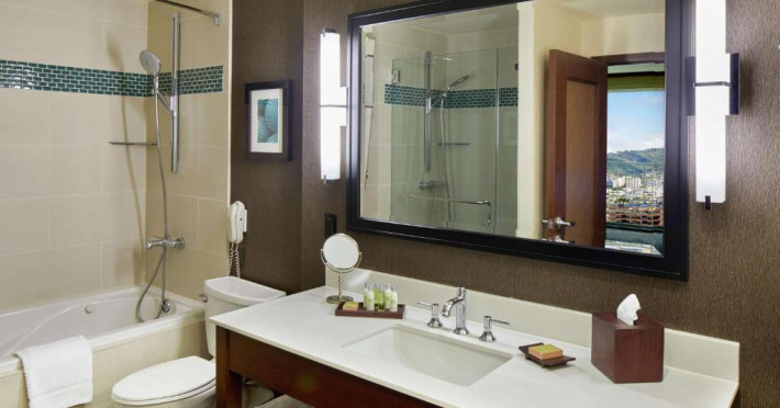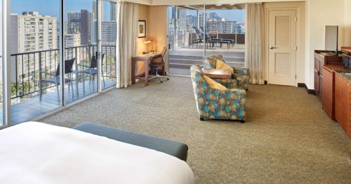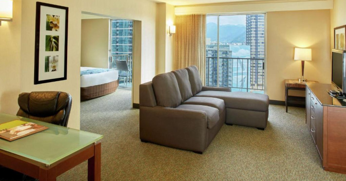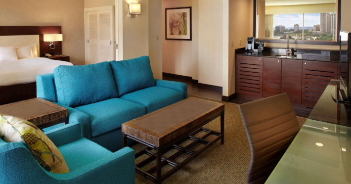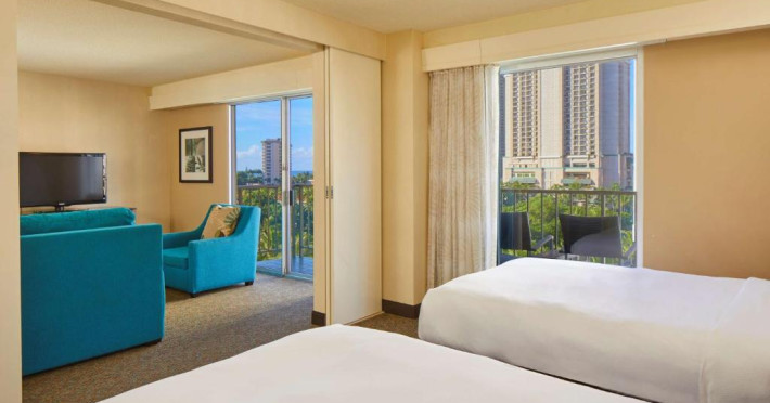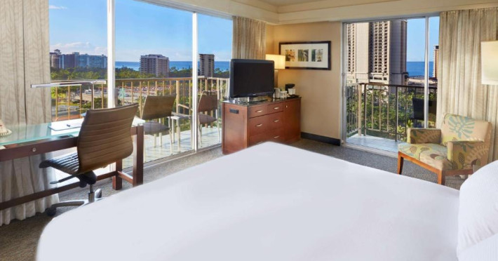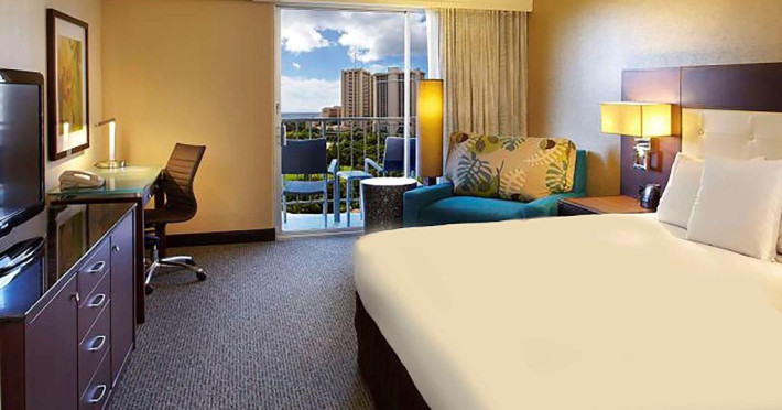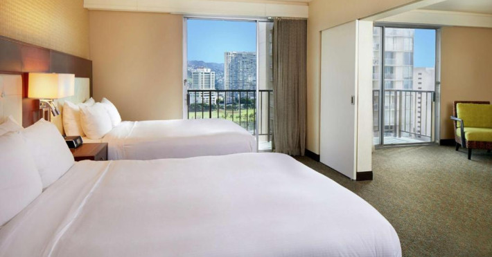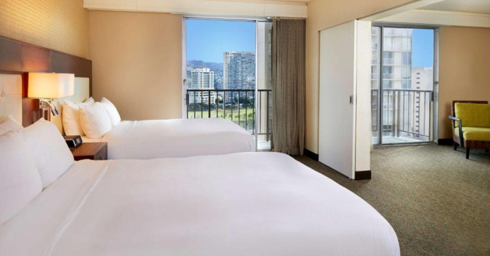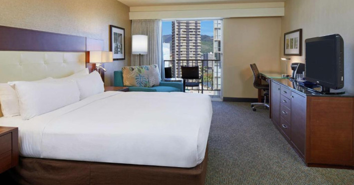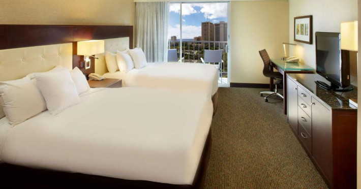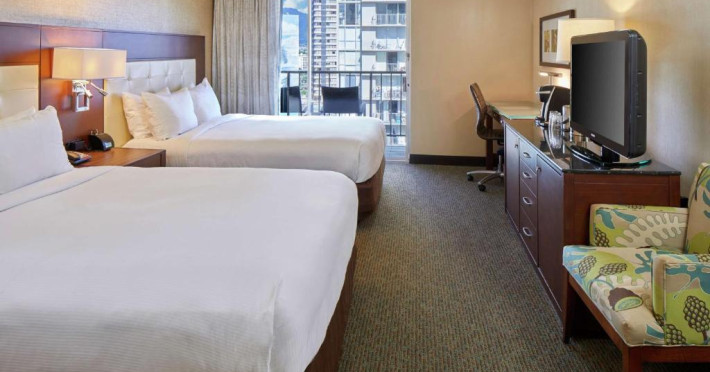 Fiecare cameră cu aer condiționat de la Hotelul DoubleTree by Hilton Alana Waikiki are TV cu ecran plat și canale prin cablu. Baia privată include un duș cu efect de ploaie supradimensionat. Sunt oferite facilități pentru prepararea cafelei.