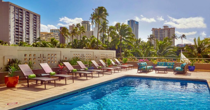 Situat la doar 6 km de centrul orașului Honolulu și la doar 10 minute de mers pe jos de plaja Waikiki, acest hotel oferă o piscină in aer liber și un restaurant.