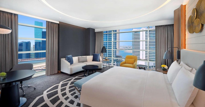 King bedded Room size between 49-60 sqm, Espresso Machine, Bose Sound System,Complimentary WiFi, floor-to-ceiling windows, 49-inch Smart TV, bathtub/rain shower. Complimentary tea/coffee, water, bathrobes and slippers.