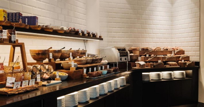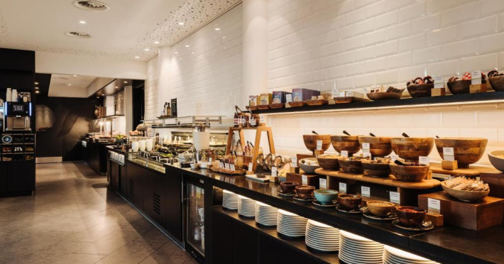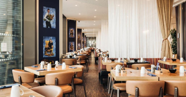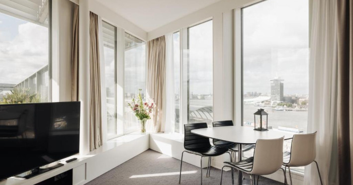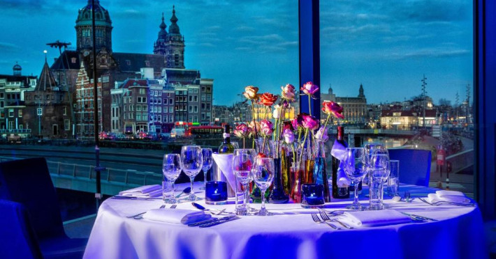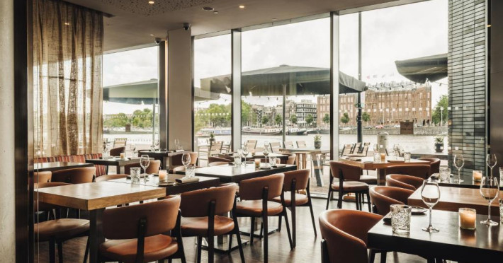 De asemenea, oaspeții pot savura diverse preparate internaționale și specialităti locale la unul dintre cele 3 restaurante ale hotelului. Eastwood Beer & Grill oferă mic dejun ușor, precum și mese de pranz și cină, intr-o atmosferă intimă. Acesta servește carne, pește și mancăruri vegetariene preparate la grătar. Oaspetii pot comanda o gustare sau o masă usoară la barul din hol, după care se pot indrepta spre SkyLounge Amsterdam, aflat la etajul 11. Seara, barul de pe acoperis cu terasă oferă băuturi si preparate culinare, precum si un program muzical cosmopolit, asigurat de un DJ.