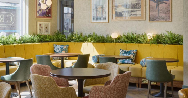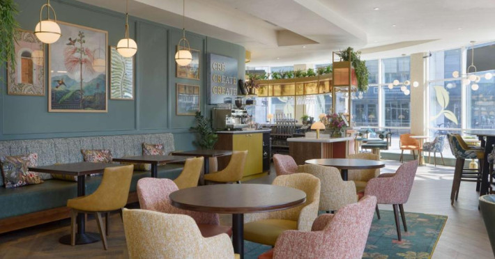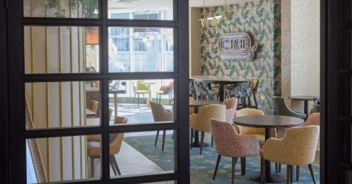 Micul dejun englezesc complet este servit in restaurantul modern, care oferă și un meniu internațional pentru cină. Barul servește pranzul, precum și cafea și gustări. Oaspeții sunt intampinați cu un prăjitură cu ciocolată la recepție, la check-in.