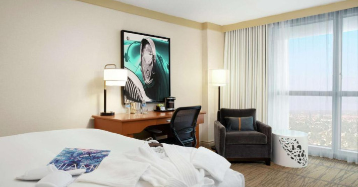 Fiecare cameră este prevăzută cu TV cu ecran plat cu canale prin cablu și oferă canale de filme cu vizionare cu plată și jocuri video. De asemenea, sunt incluse un aparat de cafea, un birou și o baie privată.