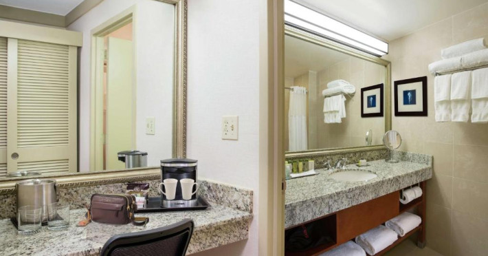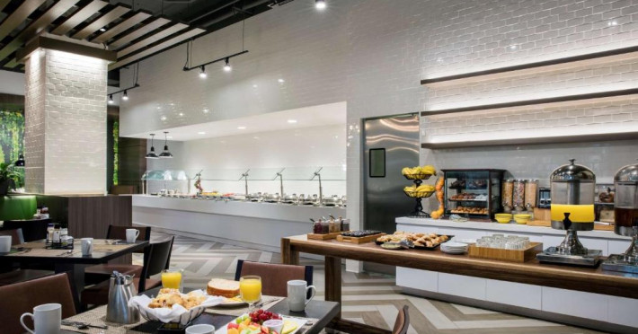 Impressions este un restaurant informal de la Miami Airport Doubletree, care servește preparate americane pentru micul dejun și pranz. Rioja este specializată in fripturi pentru cină sau bucurați-vă de o cină la DoubleShot Tapas and Burger Bar.