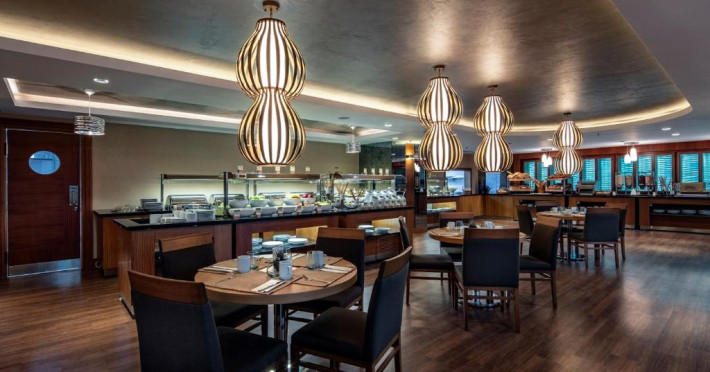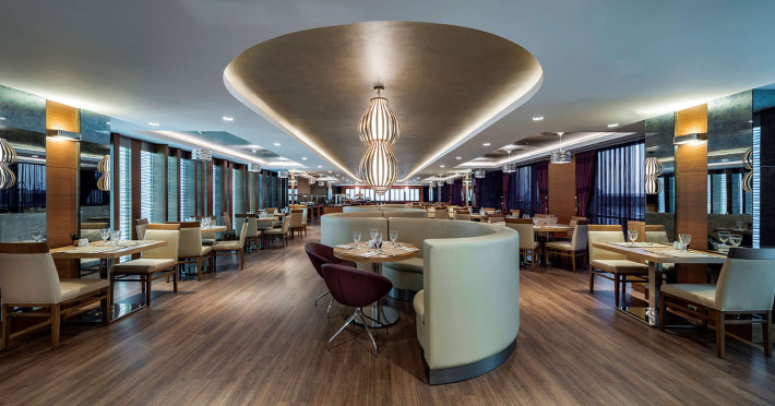 Locurile unde se poate lua masa cuprind un restaurant, o cafenea și un bar. In afară de meniul fix, hotelul oferă și pranz și cină à la carte.