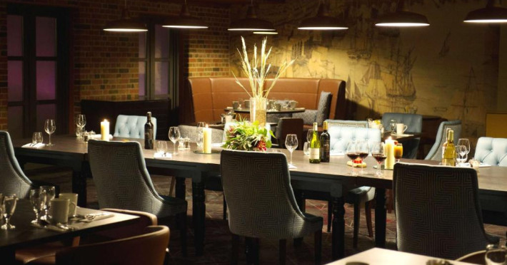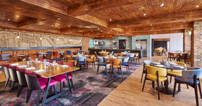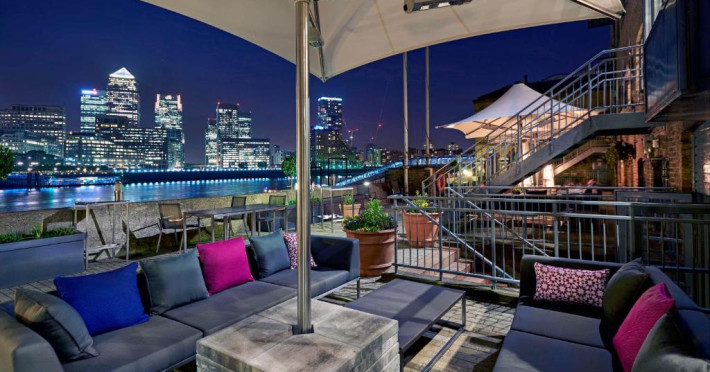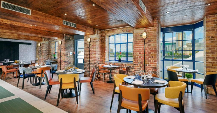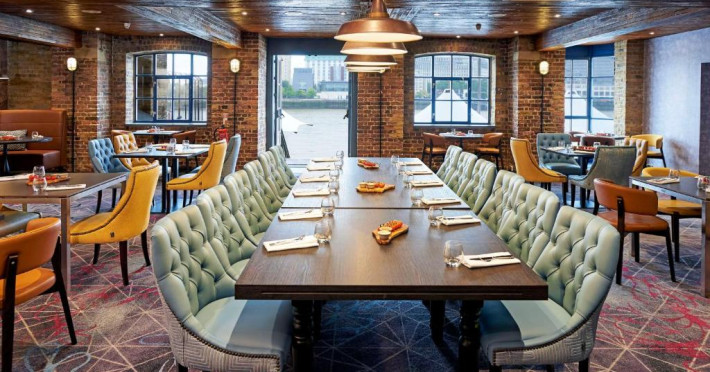 Restaurantul Columbia servește produse de sezon și preparate la grătar pe terasa in aer liber cu vedere la Tamisa și Canary Wharf. Pentru ocazii speciale, există și alte restaurante, precum The Library și Snug, care oferă o experiență culinară excepțională, intr-un cadru privat.