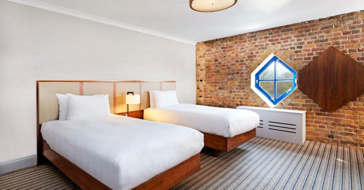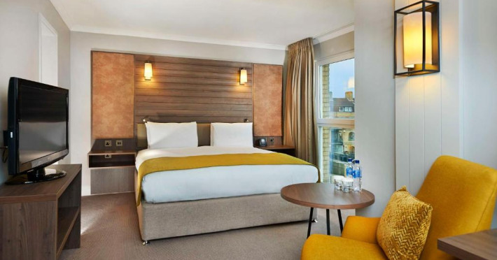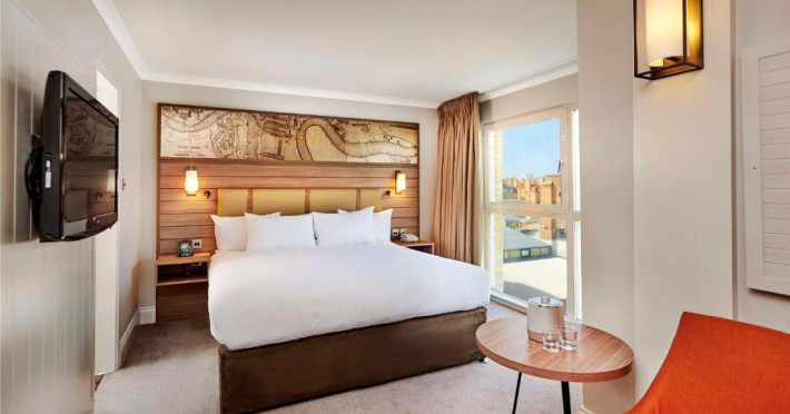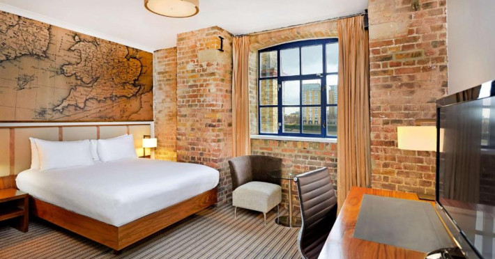 Acest DoubleTree by Hilton se află intr-o fostă clădire-debarcader, care datează din secolul al XVII-lea, fiind amenajată cu cărămidă aparentă. Acesta găzduiește ultimul doc uscat pentru construcții navale din Londra. Fiecare cameră este dotată cu aerul, facilități pregătite de ceai/cafea, TV cu ecran plat, ferestre care se deschid și baie pentru privată. Cele mai multe camere oferă vedere la orașul sau la fluviu. beneficiază non-stop de room service și de recepție.