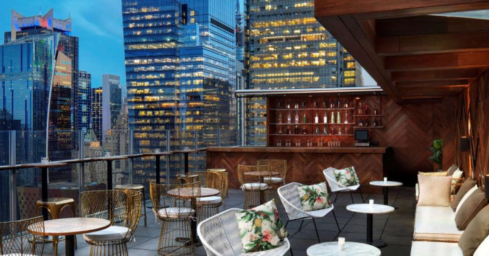 High Bar&Lounge, de pe acoperișul hotelului DoubleTree by Hilton New York - Times Square West oferă vedere nelimitată la Manhattan. Restaurantul Tranzit Restaurant & Bar serveste preparate din bucătăria americană pentru mic dejun, pranz si cină.