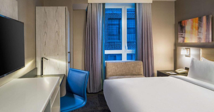 Toate camerele de la DoubleTree by Hilton New York - Times Square West sunt prevăzute cu birou, TV HD de 40 inch, aparat de cafea, seif si draperii opace. Camerele de la etajele superioare oferă vedere la rau, la orizontul centrului/suburbiei din Manhattan si/sau la Times Square.