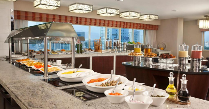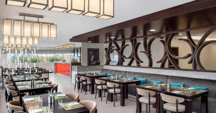 La Double Tree By Hilton Ras Al Khaimah oaspeții au la dispoziție 2 restaurante unde pot savura mâncăruri delicioase, în stil bufet sau à la carte. Preparate din bucătăria internațională așteaptă să fie degustate în fiecare zi la micul dejun, prânz și cină. Masa poate fi servită atât în interior, cît si în aer liber, pe terasă, în funcție de vreme. Sunt disponibile 2 baruri unde oaspeții pot avea diverse băuturi răcoritoare sau alcoolice. În cadrul proprietății există și o cafenea ideală pentru o gustare rapidă. Pentru cei cu anumite nevoi de nutriție, Double Tree By Hilton Ras Al Khaimah oferă meniuri pentru diete speciale.