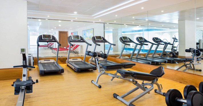 O sală de fitness cu echipamente necesare pentru o gamă variată de exerciții fizice este la dispoziția celor interesați.