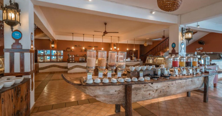 Micul dejun este servit zilnic la restaurantul Ngalawa, care oferă, de asemenea, bufet de pranz și cină sau meniu fix și divertisment live seara (sezonier). De asemenea, oaspeții pot vizita Fisherman's Seafood Bar & Grill pentru a savura o gustare la apus și preparate din bucătăria internațională de fuziune.