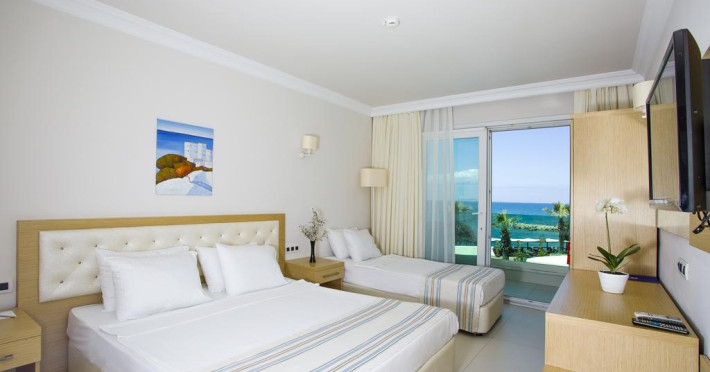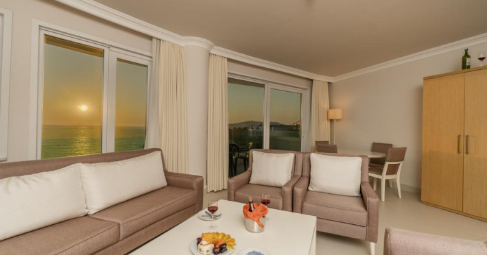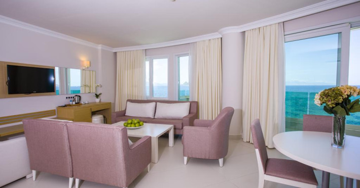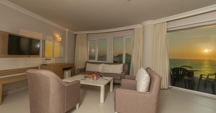 În camere există baie cu cadă sau duș ce are în dotare foehn și articole de toaletă gratuite. Unele camere au balcon cu vedere la mare sau la piscină. Fiecare cameră dispune de minibar. Oaspeții pot solicita serviciul de room service pentru a servi masa sau diverse băuturi. Camerele confortabile de la Dragut Point South Hotel au pardoseală de gresie/ marmură, aer condiționat, Tv cu canale prin satelit și seif. Oaspeții au acces gratuit la serviciul Wi-fi în camere. Curățenia in cameră se face zilnic. Anumite camere au zonă de relaxare cu canapea și cadă cu hidromasaj care asigură un plus de confort și răsfăț. De asemenea, este disponibilă o zonă de luat masa. Proprietatea oferă camere pentru familie cu o suprafață mai mare și un număr mai mare de paturi față de cele standard. Se pot rezerva de asemenea camere pentru nefumători.