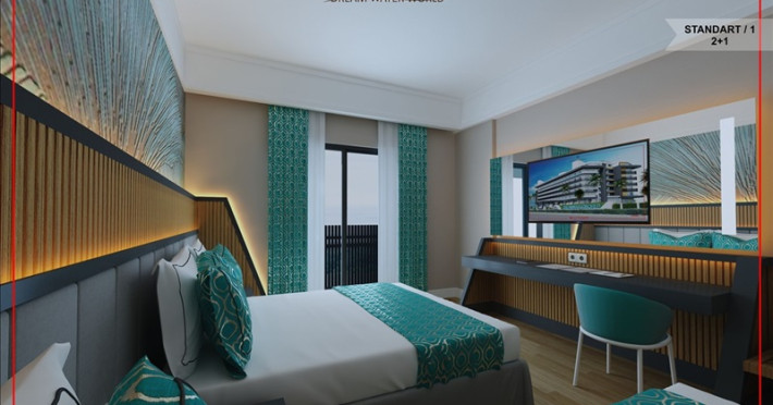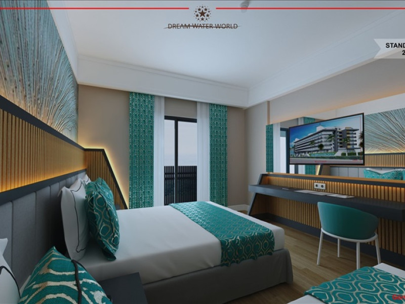 Dream Water World Hotel, clasificat la cinci stele și inaugurat în 2022, se află în pitoresca stațiune Side. Cu un design modern și facilități de lux, acest resort este conceput în mod special pentru a oferi o experiență deosebită familiilor cu copii. Complexul impresionează cu o piscină spectaculoasă dotată cu tobogane, oferind atât celor mici, cât și adulților o experiență captivantă. Parcul acvatic, integrat în amenajarea complexului, aduce un plus de distracție și relaxare, contribuind la atmosfera unică a acestui resort.Facilități camere